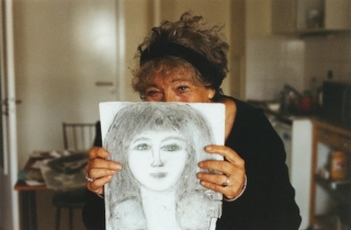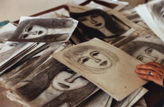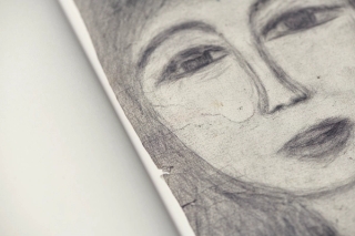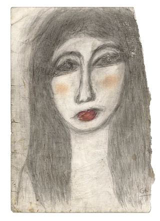 Hélène N. a 78 ans, c’est au détour d’une rue que nous nous rencontrons, elle vend ses dessins stockés au fond d’un caddie usé qui roule sur les trottoirs les jours de marché à Antony. La découverte est stupéfiante, la centaine de portraits, majoritairement noir et blanc, parfois colorés par touches, se succèdent. Regards noircis, cheveux grattés jusqu’à en trouer le papier, même visage toujours renouvelé qui ressemble étrangement à celui de leur autrice. Parfois les versos de dessins laissent apparaître un fantôme mystique de femme comme ceux que Madame N. cru voir parfois dans les heures sombres de son passé. Œuvre indéfinissable : il a semblé évident que ce travail remarquable devait inaugurer la maison d’édition Myriorama, pour mettre en avant le travail d’une artiste en marge, fascinée autant par l’Italie de la Renaissance que par la statuaire grecque ou la voix de PJ Harvey.