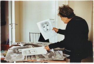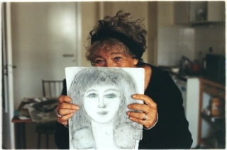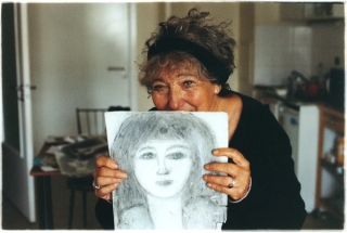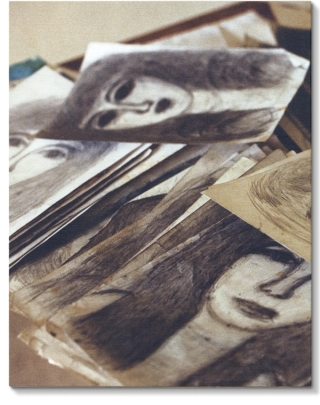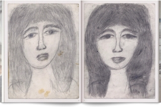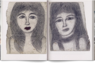 Hélène N. a 78 ans, c’est au détour d’une rue que nous nous rencontrons, elle vend ses dessins stockés au fond d’un caddie usé qui roule sur les trottoirs les jours de marché à Antony. La découverte est stupéfiante, la centaine de portraits, majoritairement noir et blanc, parfois colorés par touches, se succèdent. Regards noircis, cheveux grattés jusqu’à en trouer le papier, même visage toujours renouvelé qui ressemble étrangement à celui de leur autrice. Parfois les versos de dessins laissent apparaître un fantôme mystique de femme comme ceux que Madame N. cru voir parfois dans les heures sombres de son passé. Œuvre indéfinissable : il a semblé évident que ce travail remarquable devait inaugurer la maison d’édition Myriorama, pour mettre en avant le travail d’une artiste en marge, fascinée autant par l’Italie de la Renaissance que par la statuaire grecque ou la voix de PJ Harvey.